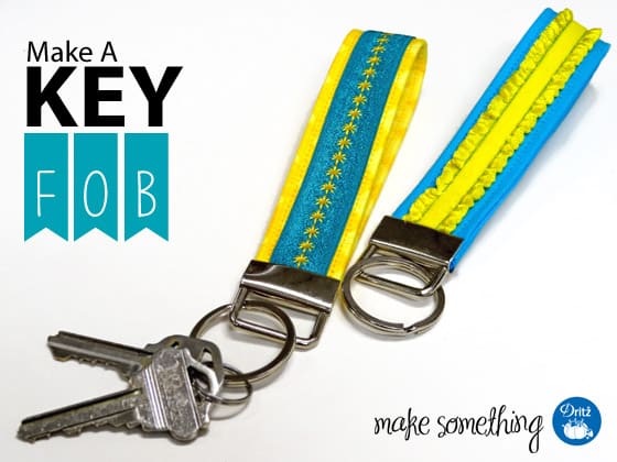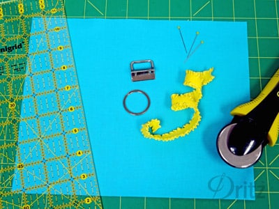 - Tissu 10″ x 8″ par porte-clés (ici, on a opté pour le Ziggy jaune et le Soho Solid turquoise de Trésors intemporels)