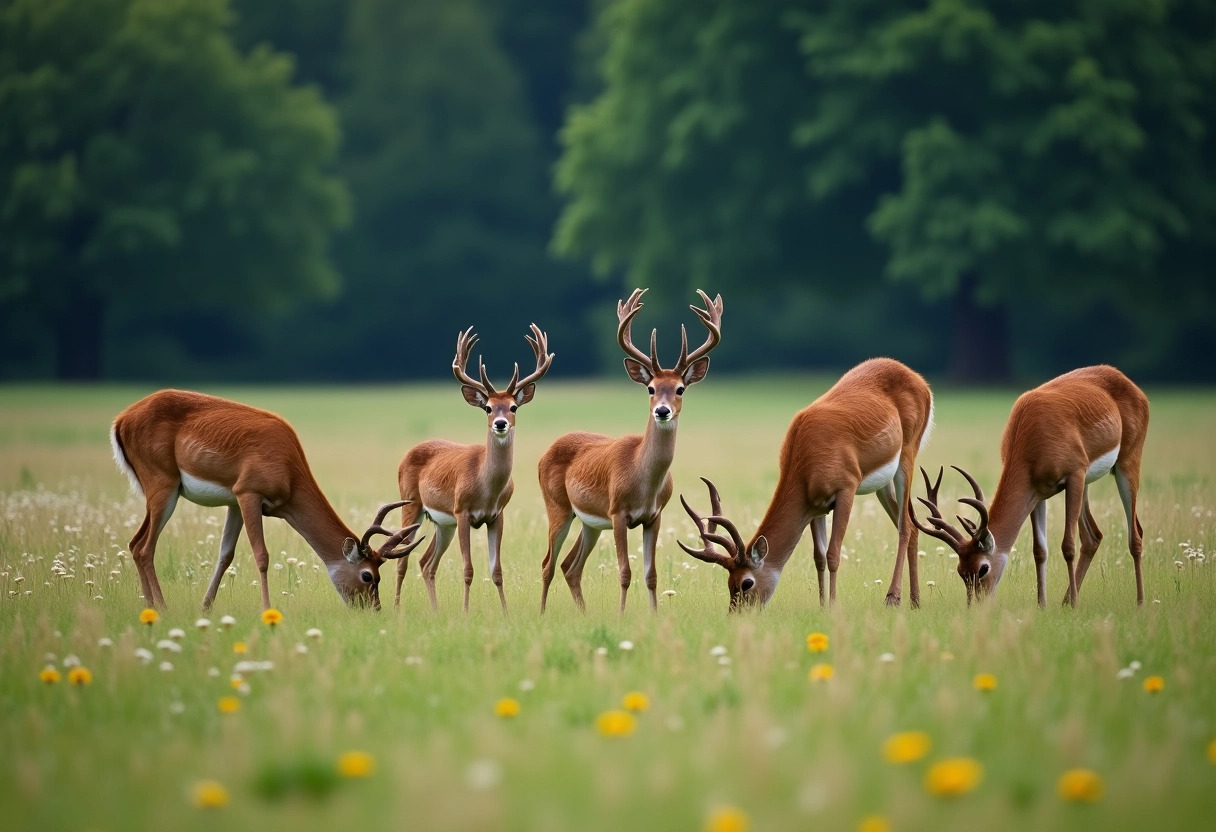 - Les cerfs : majestueux et symboliques, ils sont souvent observés au crépuscule.
