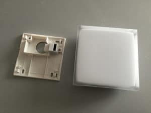 Le thermostat affiche des dimensions compactes : 83 x 83 x 22 mm. Il mesure la température de 0°C à 50°C, avec une précision de 0,1°C, et permet des réglages de 5°C à 30°C par incréments de 0,5°C. Fonctionne sur trois piles AAA (autonomie d’environ deux ans).